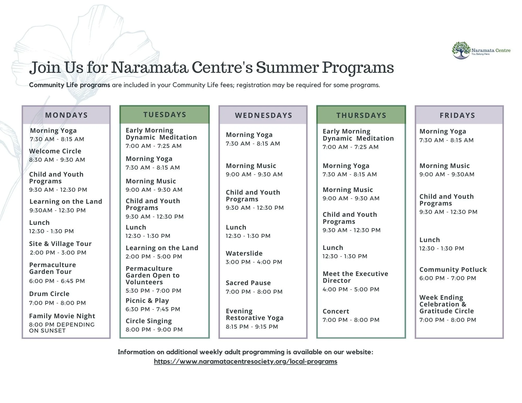 We’re looking forward to your arrival. Make the most of your time at Naramata with a variety of programs for everyone in your family.